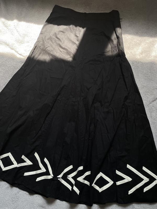 легка бавовняна довга спідниця с геометричним візерунком в нижній частині. збоку блискавка.