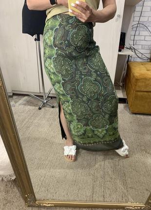 Юбка от Madeleine в отличном состоянии! Верх из вискозы, есть подкладка! Размер 38-40, смотрите замеры! По поясу 36, бедра 50, длина 99 см