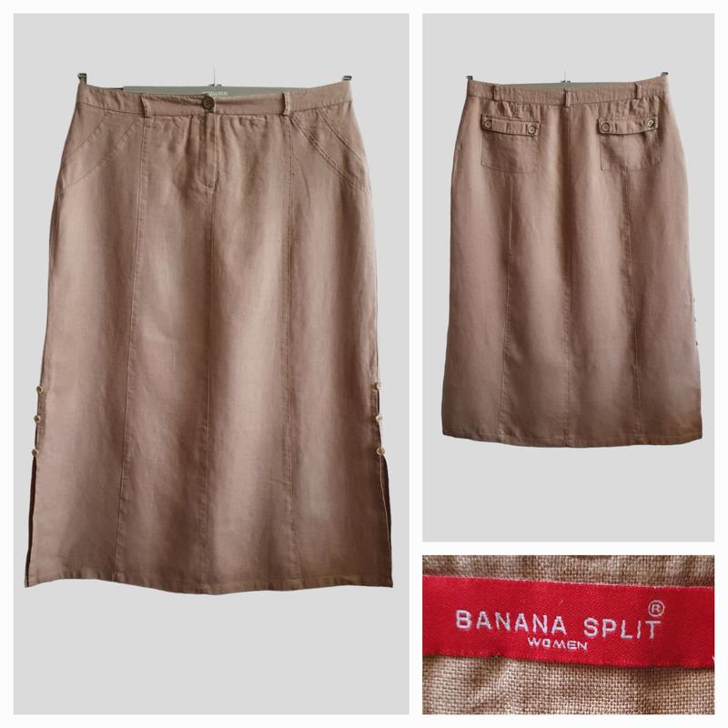 Юбка из 100% льна бренда Banana Split, юбка в отличном состоянии. Размер указан eur 46/ XXXL. См. замеры: ПОТ - 47см, ПОБ - 62 см, длина по боковому шву - 92 см. По запросу сделаю дополнительные фото или замеры. Пересылка по предоплате или безопасная оплата.