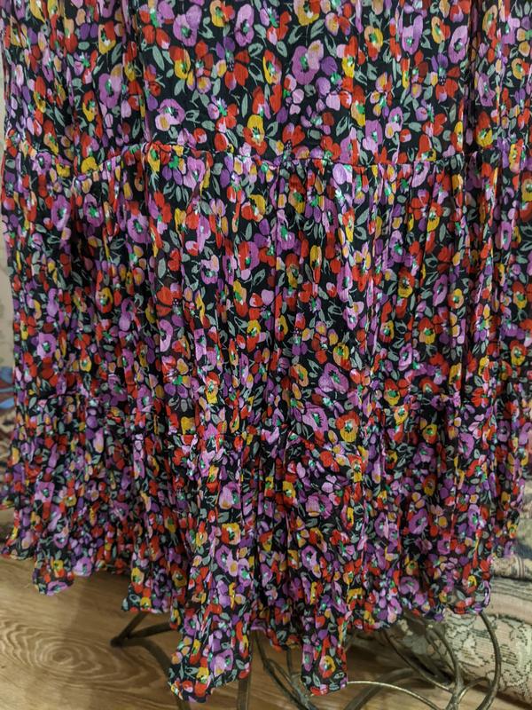 очень красивая юбка,чудовый принт,весела,цветная гамма, снизу роскошная шляоа присборенная, удирется шикарно.пот резинка 45(55)см, длина 88смм