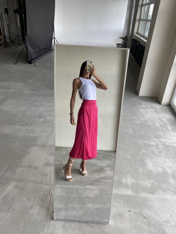 ❤️ФОТО РЕАЛ 💚 Костюм 2-ка (юбка+топ) Модель #419 ryab Ткань: топ - трикотаж рубчик; юбка-шелк армани Размеры 42-46 Цвета (топ/юбка): белый/ черный;белый/фуксия; белый/изумруд Цена 670 грн