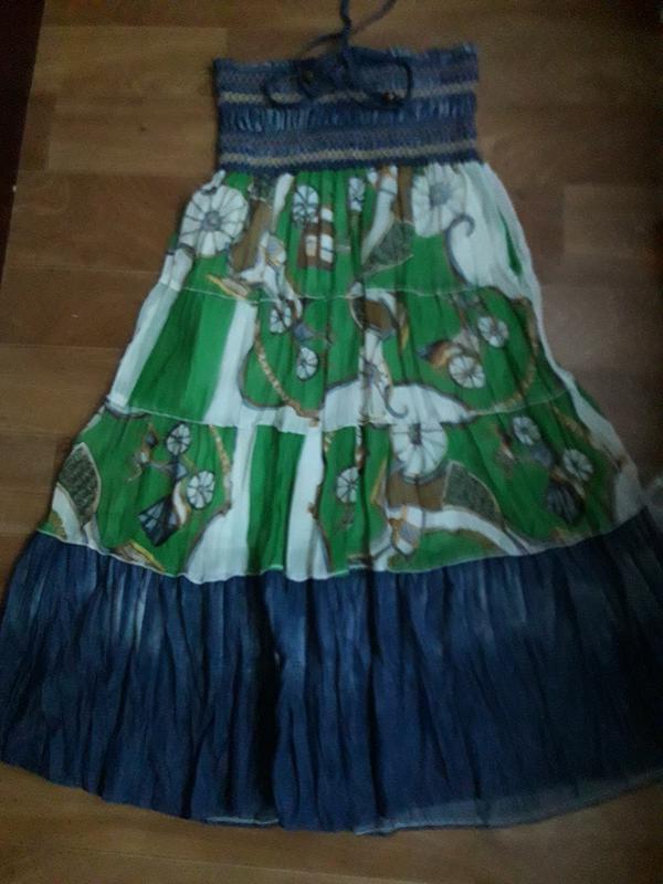 Юбка шифон с джинсовыми вставками. Можно носить как сарафан. Есть подкладка