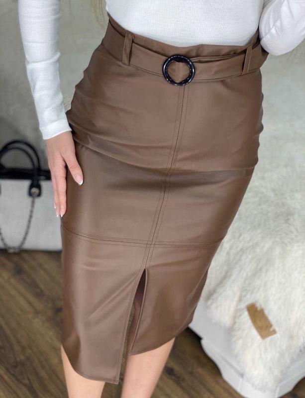 Стильная женская юбка длины миди. Материал: качественная эко-кожа Эффектно садится по фигуре, подходит на различные типы фигур. Размер S M Цена :430грн