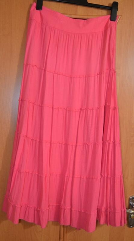 Класна довга юбка в дуже хорошому стані малинового кольору.Заміри: довжина 90см. ширина в поясі 39см. обєм бедра до 106см.