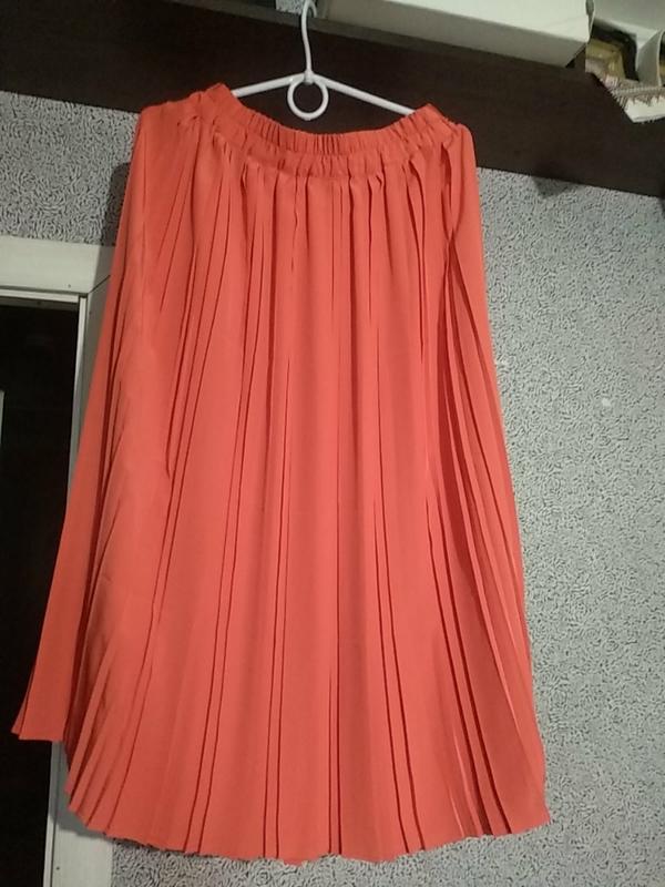 Очень красивый коралловый цвет фото так не передает, нежнейшая как шелк на ощупь, примайже новая,пот на резинке 37-49, длина281.