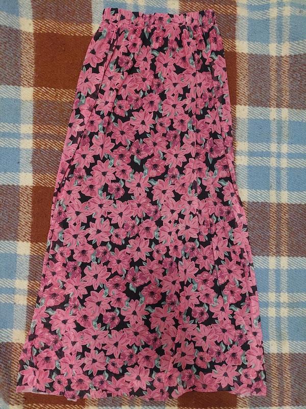 довга спідниця в квітвовий принт дов-100см, пояс-29 і тянеться до45см. рнзинка дуже гарно трима. стан ідеальний