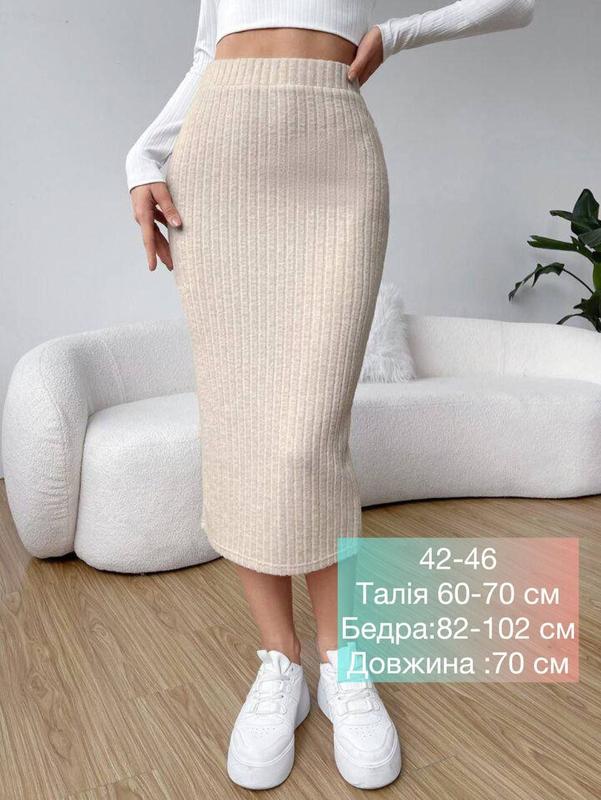 Юбка с распоркой ✨Мод:111 ✨Тканина: Ангора рубчик ✨Размер: 42-46 ✨Цвет: черный,беж Юбка очень красиво ложится по фигуре.На талии резинка.Ткань очень красиво тянется.