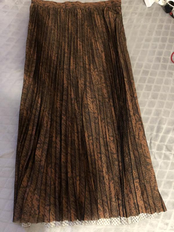 Поэсированная легкая юбка от нм, одевалась 2 раза, состояние идеально. ЕСТЬ 2005анс молния работает, но ушки нет. Размер 42, на рост 170. Принт змея