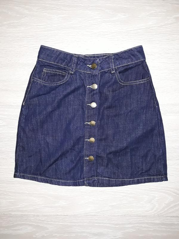Фірмова джинсова спідниця для дівчини. Розмір S. По всій довжині застібається на ґудзички. Склад 100% бавовна. Стан ідеальний! як нова. Заміри: довжина 42 см, талія 33 см, попа 48 см, ширина спідниці у низу 49,5 см