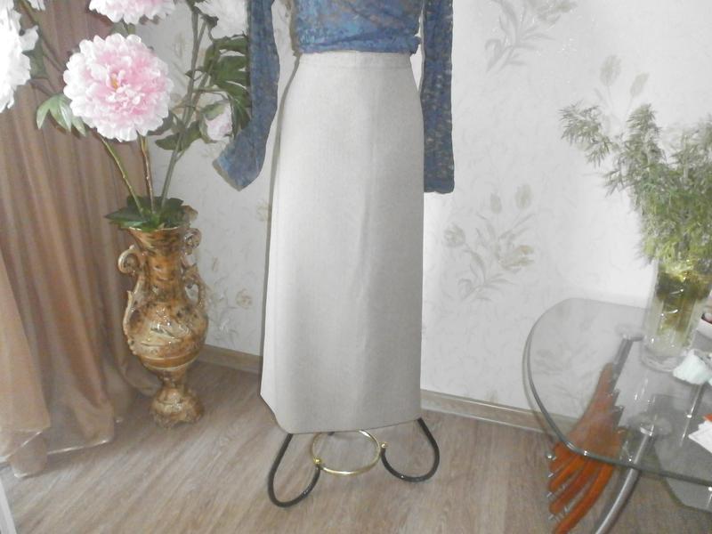 Торг Спідниця жіноча, ошатно, ділового стилю з костюмної тканини. Бежевого кольору , більше підійде на сезон осінь, весна , зима. Ззаду розріз в складці , прикрашене гудзиками. Розміри: довжина 79 див. ПІТ 45 див. ПОБІДИ 58 див.