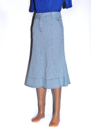 Спідниця нова, без бірки, дефектів немає. колір білий у блакитну смужку матеріал щільний, добре сідати та тримає форму. приємний до тіла, крій дзвін. піт 38-42 см поб 48-52 см, довжина 71 см пересилаю: новою поштою, укр-поштою, підписуйтесь на мій магазинчик, викладатиму багато цікавого. якщо є питання, пишіть я Вам з радістю відповім.