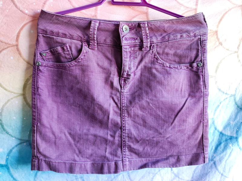 Шикарна джинсова міні спідниця ожинового кольору бренду Esprit. Розмір вказано 38. По замірам ПОТ-38см, ПОС-45см, довжина-38см.
