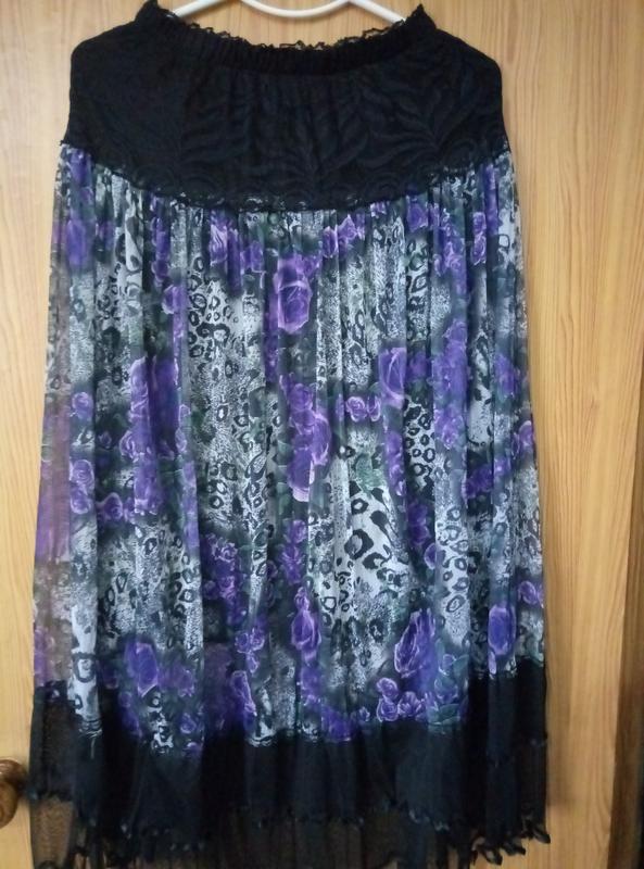 Юбка длинная, очень красивая и легкая. В поясе тянется до 90 см, длина - 93 см. Юбка новая, но без броков.