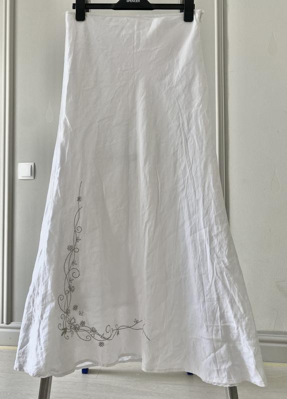 Льняна довга спідниця на підкладці. Вишивка не дуже виразна але красива на подолі .