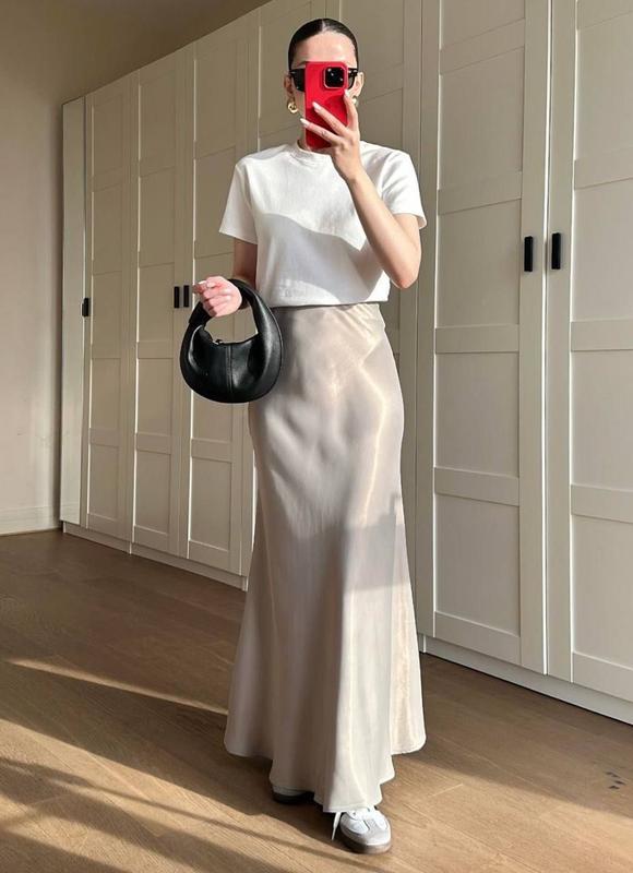 Юбка макси ❣️ 🧶Ткань: Шелк Армани Премиум 📐Размер: 42-44, 46-48 🎨Цвет: черный, шампань, графит, малина Длина юбки 100см ❤️ На талии резинка и потайная молния ✨
