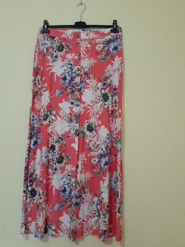 Длина 105 см, пот 43 см, 60 см. Пояс на широкой резинке. Ткань трикотаж, 96% вискоза.