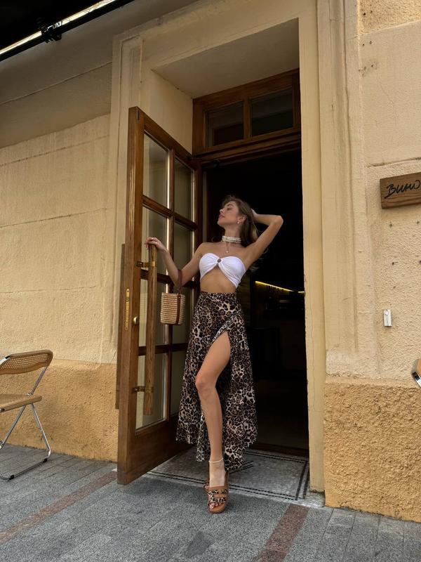 Все фото по модели сделаны УПОТРЕБЛЕНИЯ ✔️ ▪️Модель 65 ▪️Размер 42-46 ▪️Тканина-софт ▪️Цвет - цветочный принт розовый, голубой, принт лео Свободная, легкая юбка по талии регулируется завязками. Актуальный принт и длина.