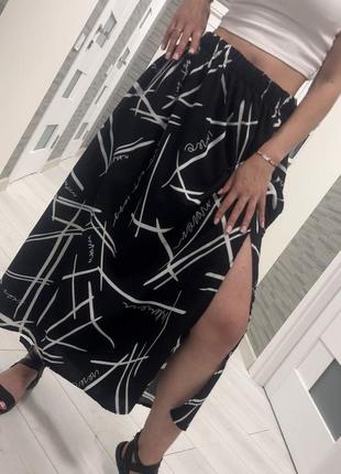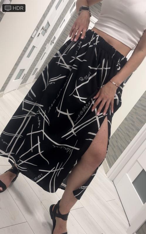 Юбочка ( на резиночке) С пикантным разрезом “EASY“ Невесомая юбочка 😋круто смотрится с любой обувью 🤗 ✅Ткань : супер-софт 🌈Цвет : белый , черный 👭Размер : 42-58 длина 90 см