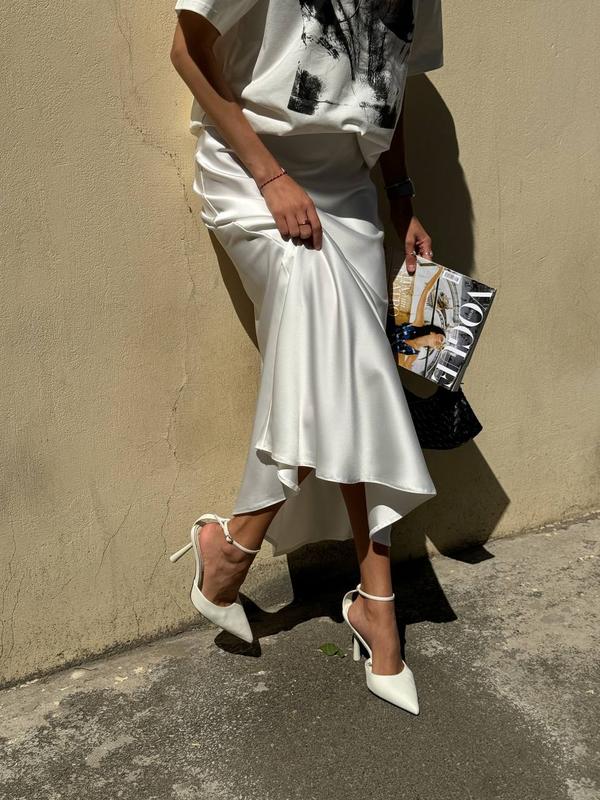 Довга сатинова спідниця, длинная сатиновая юбка макси