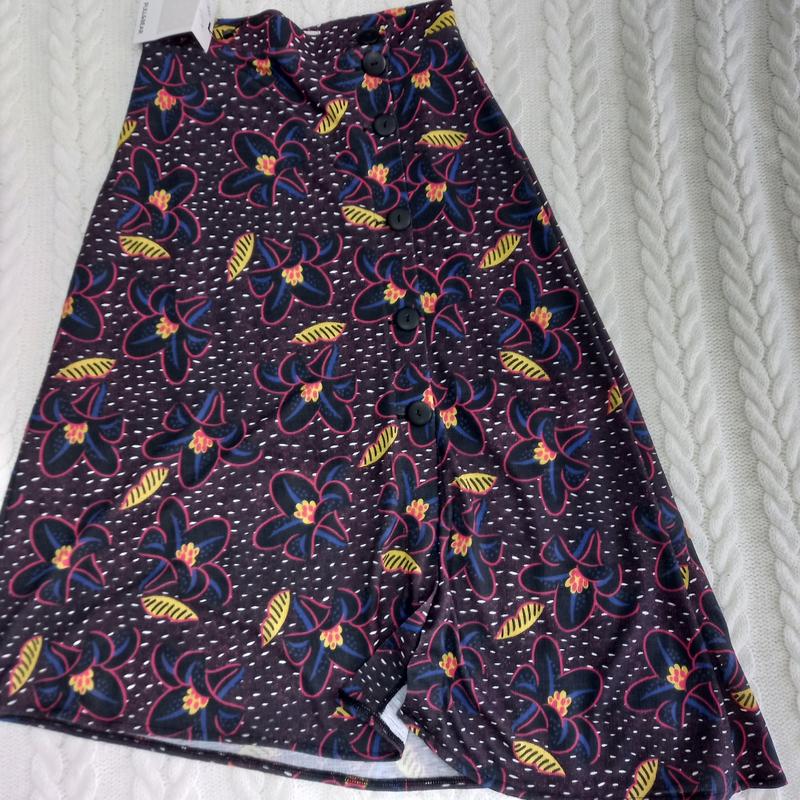 Юбка в цветочный принт спереди на пуговицах,низ юбки выкроен на косину.юбка с подкладкой.Замеры:об.тал.34см., длина косынца 77см., длина более короткого конца 67см.