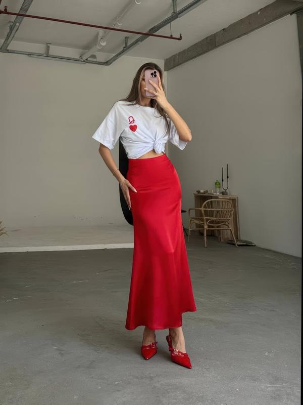 Юбка Мод. 592 ▫️ Ткань: атлас королевский ▫️ Цвет: красный, шампань, черный, розовый ▫️ Размер: 42, 44, 46 Цена: 900 грн Атласная юбка макси в четырех цветах - это отличная базовая модель в гардеробе. Красиво подчеркивает фигуру, хорошо комбинируется с любыми вещами, можно создать множество крутых lookов. - Замеры ОТ 62/66/70 см ОБ 86-88/88-90/90-92 см Длина по бокам 95 см
