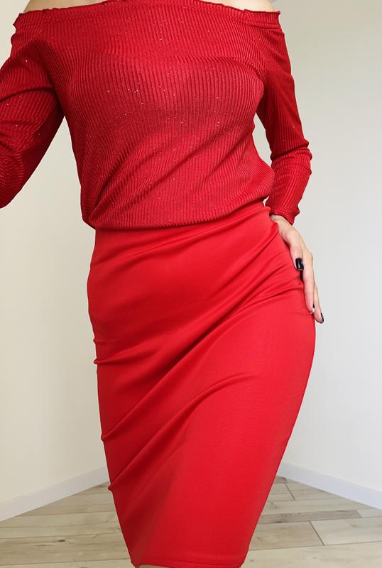 Красивая красная юбка. Хорошо тянется, имеет нюанс на последней фотографии.