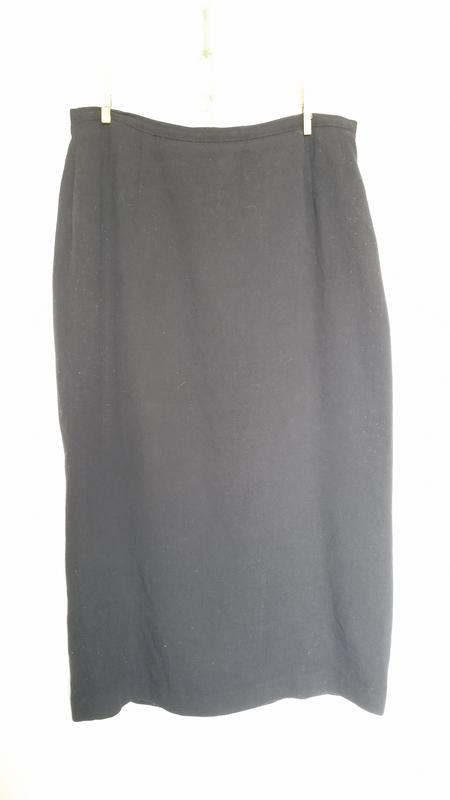 черная, на подкладке, шлица сзади, длина по боковому шву83см,пояс полуобхват40-41,бежар55-56,шлица27,ширина по низу51,ткань50%вискоза,50%полиэстер