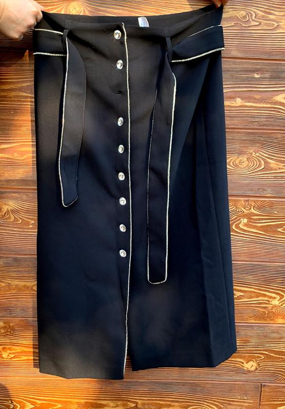 Новая с биркой юбка. Длинна 80 см. Объем талии 90см. Обьем бедер 110 см. На подкладке. Немного тянется. Пояс со стразами. Пуговицы камушки. Одна пуговица сломалась, можно сделать. Купила за 1900грн. Отдам значительно дешевле
