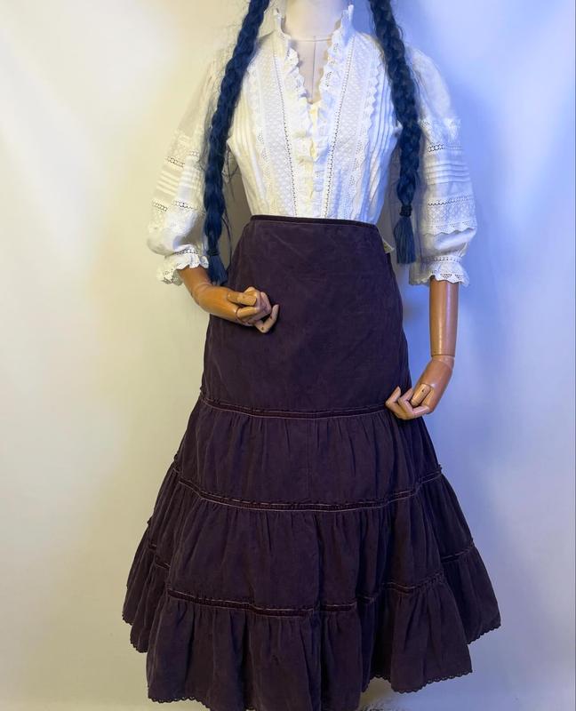 Новая вельветовая юбка из четырех ярусов M&S💜 Каждый ярус отделан бархатистой линией, очаровательная цветочная вышивка в тон цвета юбки. Низ отделан кружевом. В основе вельвета 100 % коттон Размер 16 Замеры: ПОТ 44 см, сбоку молния ПОБ 55 см Длина 75 см
