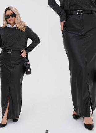 Трендовая юбка Юбка длины миди из эко кожи черного цвета. Модель с разрезом спереди и высокой посадкой!! Застегивается на молнию и пуговицу. Смелость и элегантность в одном образе!!! Мод. 214 Размеры : 48-52 Ткань : еко кожа на трикотаже мягкая и красиво тянется.