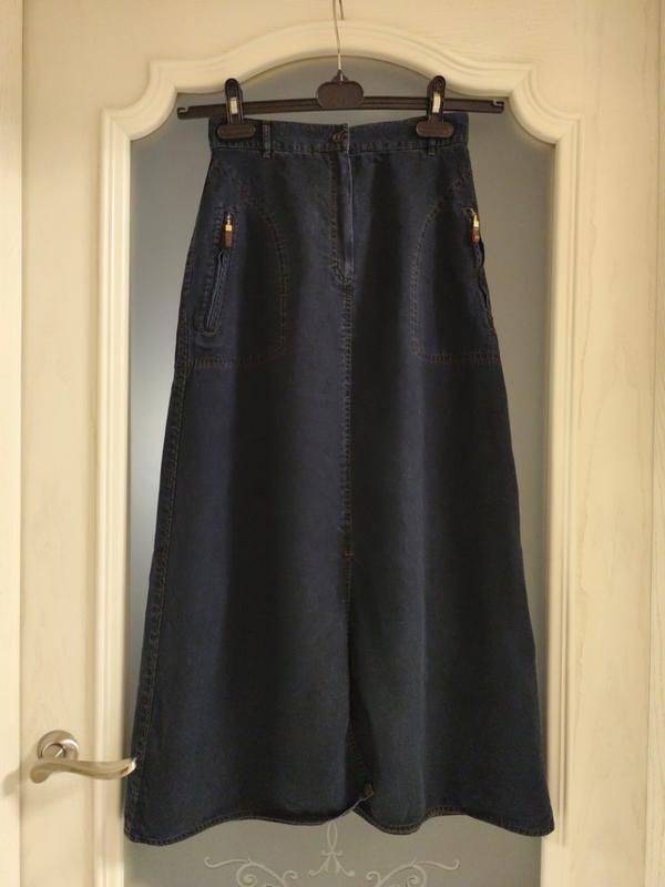Стильная джинсовая юбка, спереди и сзади разрез, юбка трапециевидная, состоянии идеальное, размер 36