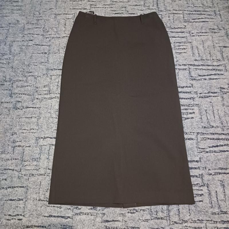 юбка длинная (середина икры) сзади разрез есть молния можно надевать с ремнем или пояском размер 12