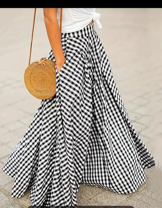 Элегантная Клетчатая миди-юбка из Полиэстера и Спандекса, Можно Стирать в Машине - На Все Сезоны ОТ 100 Длина 108