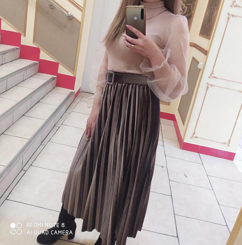 Юбка в хорошем состоянии, имеет поясок. Приятная к телу.