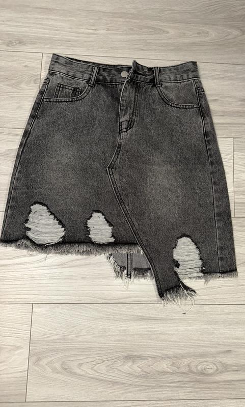 Джинсовая юбка, асимметричная.С эффектом потертостей