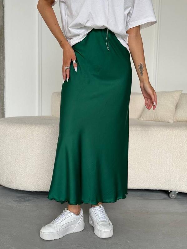 Трендовая шелковая юбка ▪️ткань : шелк Армани ▪️размеры: S / M, L/XL ‼️Только в черном цвете есть большие размеры:2ХL, 3 XL ▪️цвета: зеленый ( изумруд), бежевый, черный, белый, серый, пудра ▪️На талии- скрытая резинка модель: 083 шх