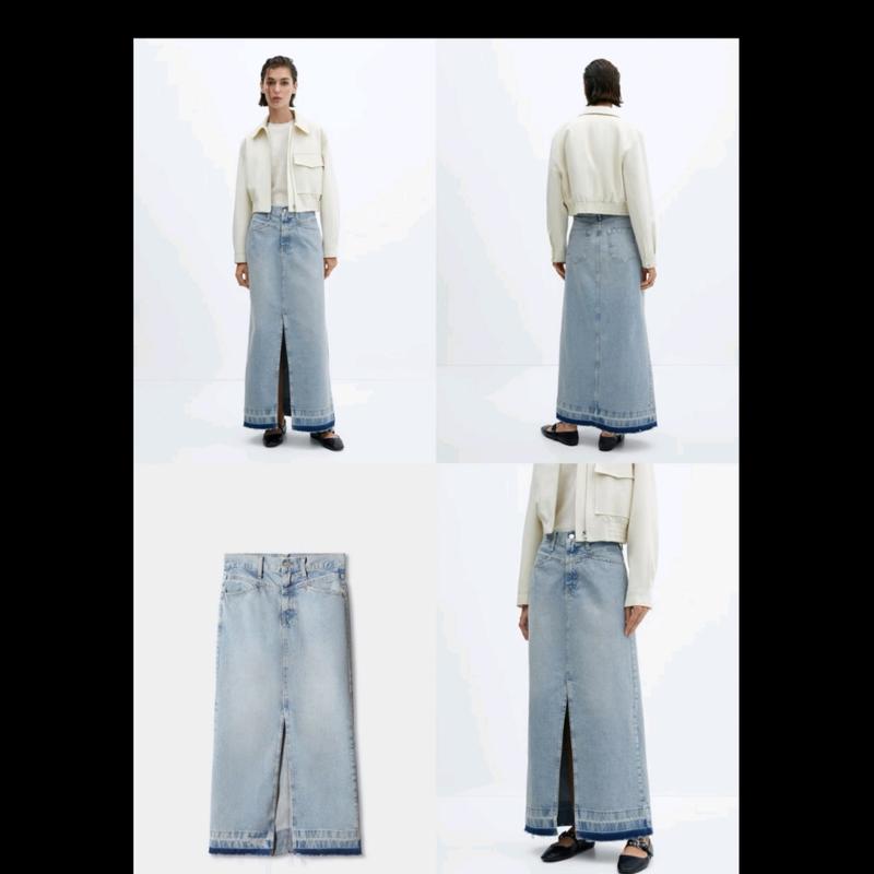 Mango, стильная качественная, красивый цвет с карманами. качественный джинс, длинная, на лето!