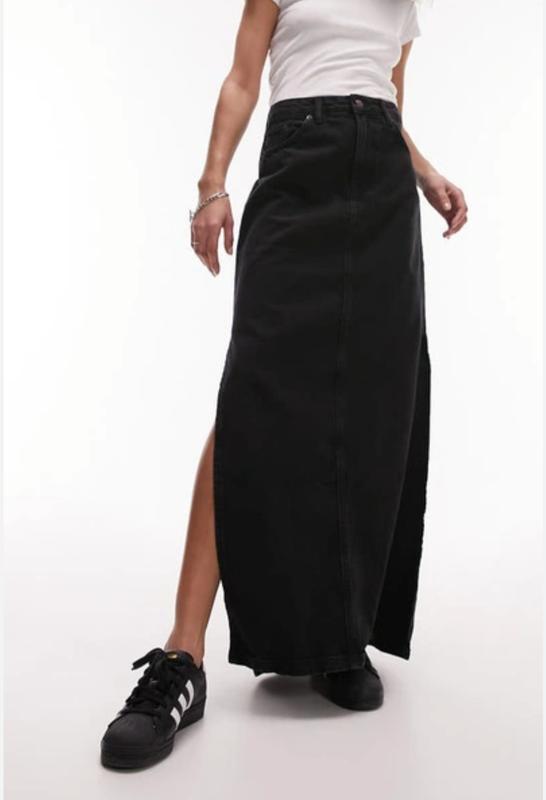 Стильная юбка из плотной джинсовой ткани без стрейча, по бокам разрезы, длинна 92см, талия 36см, бедро 45см, разрезы по 53см, xs полномерная, подойдёт на s/m