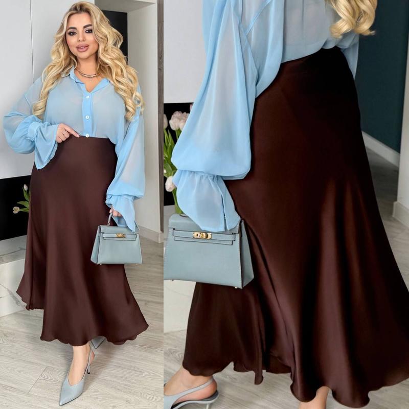 Новинка 💐 Код. 1/0011/6/0 / Юбка из шелка Армани Ціна. 500 грн Сезон: весна-лето 2025р. Размеры: 48-50, 52-54, 56-58 Параметры по готовому изделию: ОТ / ОС / Длина: 48-50: 72-8**********: 8**********-58: 88-96/140/88 Ткань: легкий шелк «Армани» средней плотности. Трендовые цвета: - черный - бутилка - шоколад - бордо Легкая юбка с эластичным поясом на резинке. С выксовкой посадка, расклешенная по низу, красиво спадае. На моделях размер юбки 52-54