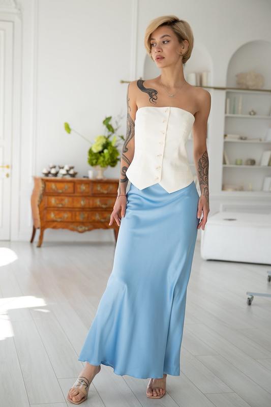 Длинная шелковая юбка голубого цвета с высокой посадкой 4 цвета