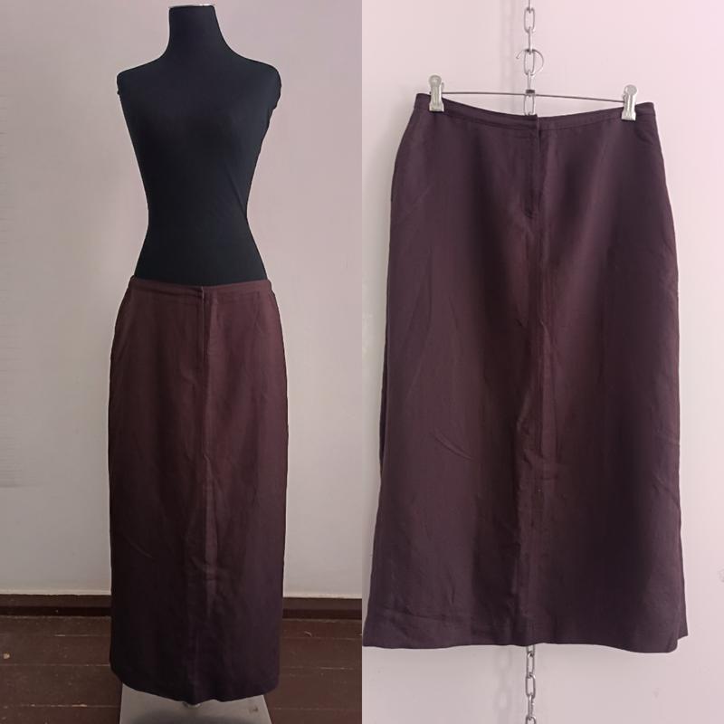 Длина 88 см, ширина в талии полуобхват 42 см, ширина в бёдрах полуобхват 55 см св 55% лён, 45% вискоза. идеальное состояние, насыщенный цвет, сзади вырез , 2 кармана по бокам