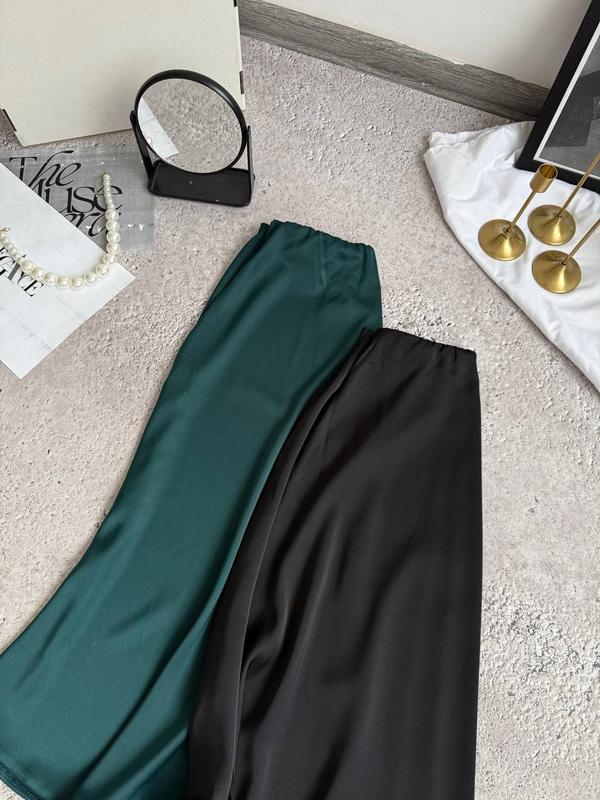 Спідниця жіноча довга на резинці шовкова юбка максі базова чорна бордова бежева зелена