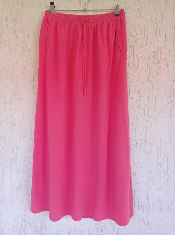 Длинная юбка из вискозы в красивом состоянии. Указан размер 12 евро, ориентируйтесь на замеры длина 95, полуобхват пояса 40-44, бедер 58.