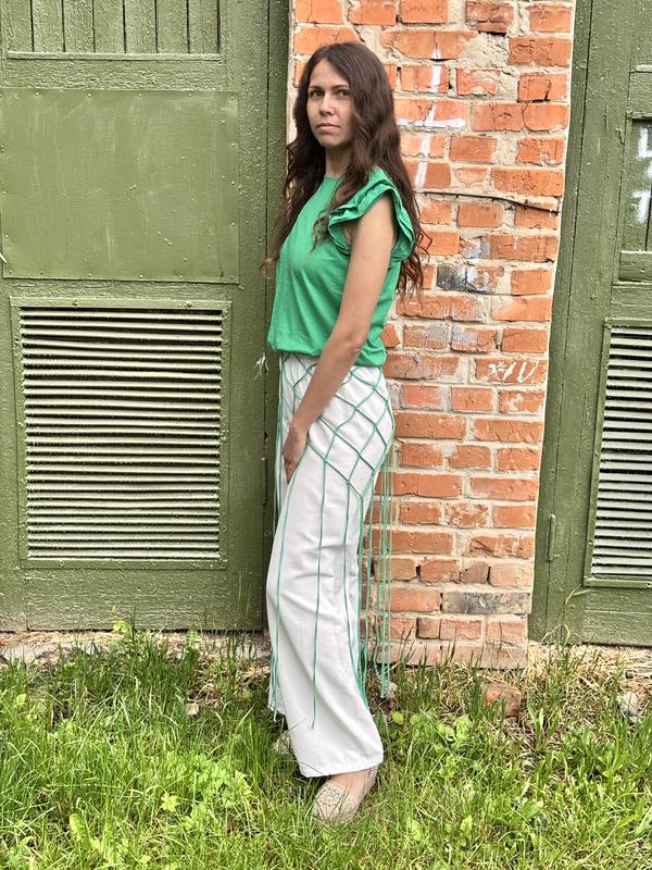 Макраме-спідниця-хустка “Сітка” Авторський акцент, який перетворює звичайний образ на стильний і сміливий. Одягається поверх сукні, штанів або шортів — ідеальна для фотосесій, фестивалів, відпочинку на природі чи міських прогулянок. Матеріал: 100% бавовна Колір: зелена трава Розмір: універсальний (регулюється на талії) Ручна робота з любовʼю до текстури та свободи руху.