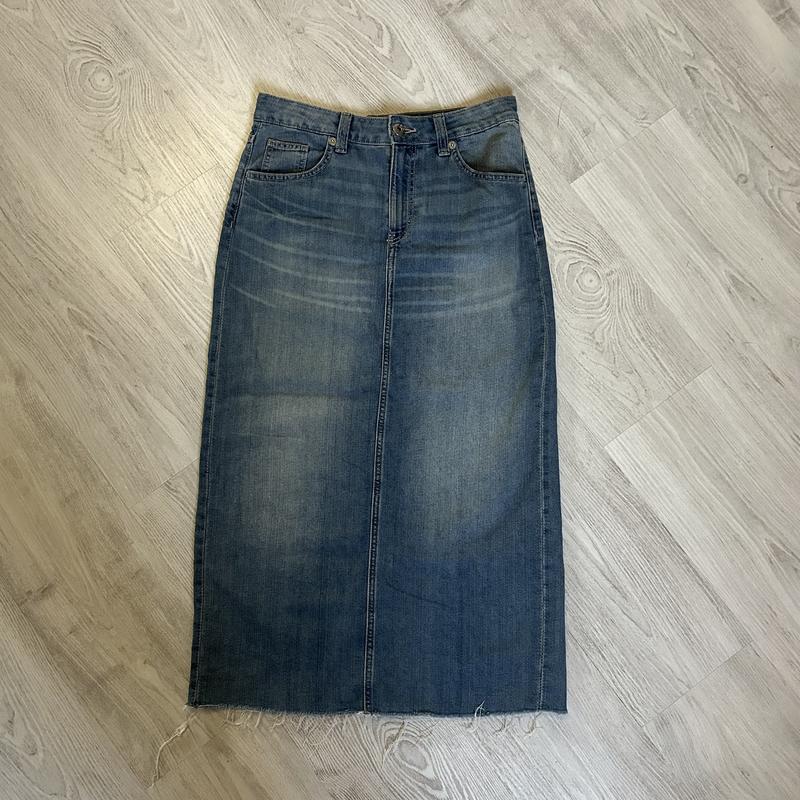 Нова, але бірку зрізала. Я зазвичай ношу 32-34 розмір, тому спідниця на мені як на низькій посадці. Пот-38,5см Довжина-84см