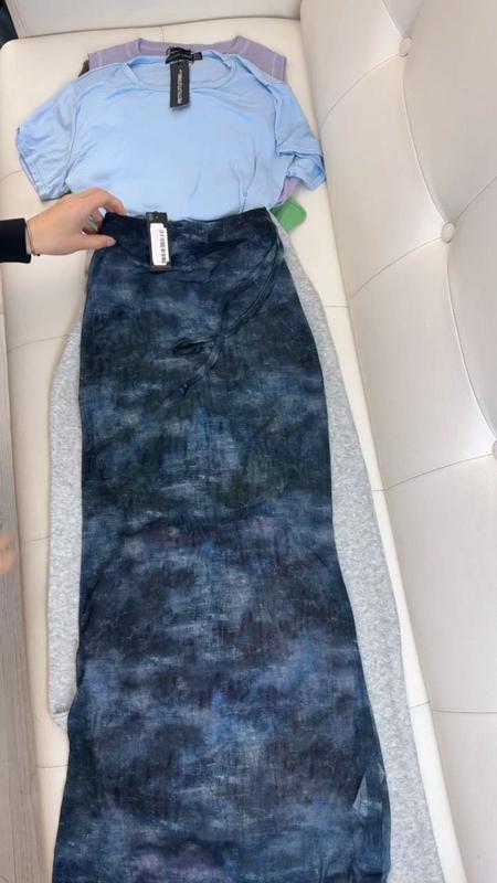 Прозрачная юбка сетка стрейч размер l принт тайдай размытые облака
