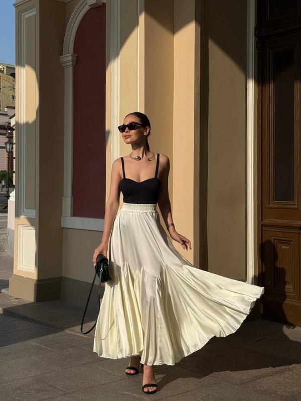 Limited Edition Юбка Цвет: сливочный, темный капучино, черный 🔸Мод. 4402 🔸Размер: 42-50 (oversize) 🔸Ткань: натуральный шелк (Турция) Длина: 95см ОТ от 55см до 85см Рост модели 167см Уникальная юбка из лимитированной коллекции, созданная для ценителей элегантности и современного стиля. Выполнена из натурального шелка, данная модель имеет фасон “полное солнце” имеет множество дополнительных клинов, создающих впечатляющий объем и динамику движения. Современный крой сочетает утонченность классики с трендовыми деталями, а нераельный расход ткани подчеркивает эксклюзивность вашего изделия. 🔸 Лимитированная серия 🔸 Фасон: полное солнце, клеш с клиньями 🔸 Материал: 100% натуральный шелк 🔸 Дизайн: современный, эффектный силуэт 🍸 Идеально подходит для создания неповторимого образа на особое событие.