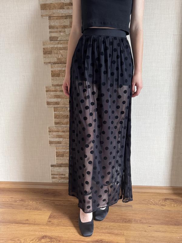 Максі спідниця H&M Divided розмір ХС, верх фатин у велюрові горохи, знизу короткий трикотажний підʼюпник , довжина 101 см, підюпник 33 см , ПОТ 28 см