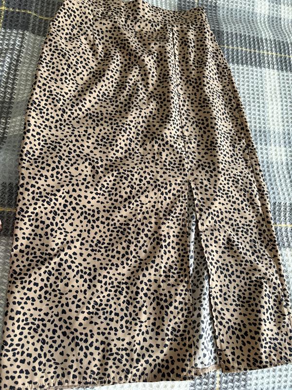 Спідниця міді з леопардовим принтом. Розмір xs. Довжина - 74 см, півобхват - 32 см. Без підкладки, не просвічується. Приємна легка тканина.