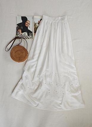 🌿 невесомая белая макси юбка H&M с резинкой на талии, ткань коттон Размер:42 Замеры:ПОТ 41 см, длина 117 см